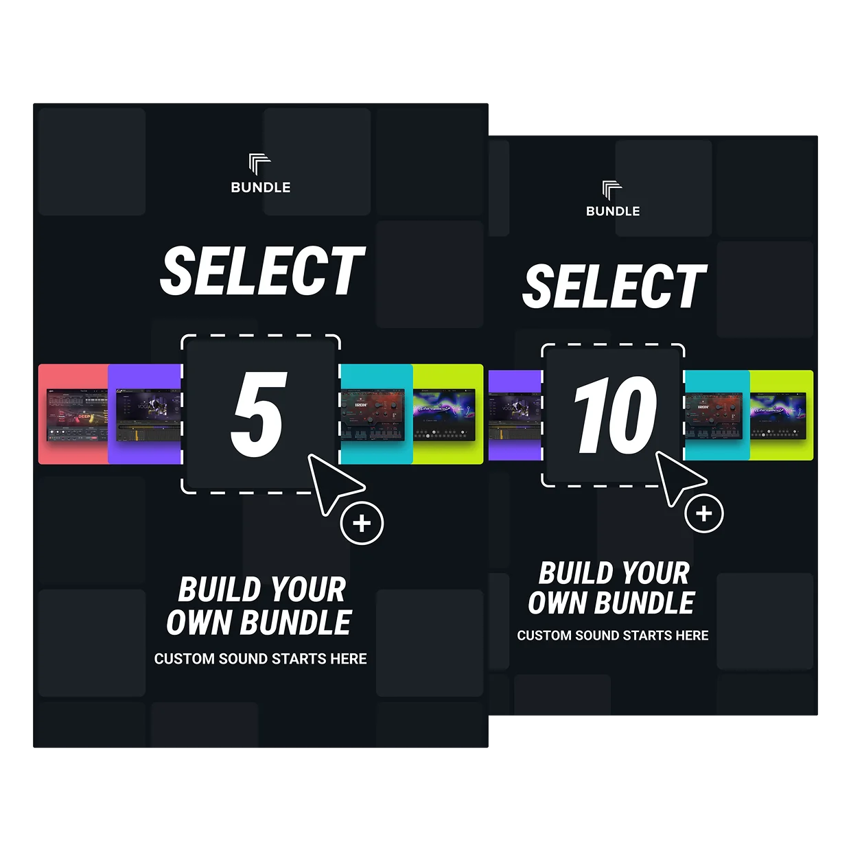 UJAM 커스텀 번들을 통해 UJAM의 전체 플러그인 카탈로그에서 원하는 제품만 골라 나만의 번들을 구성할 수 있습니다.