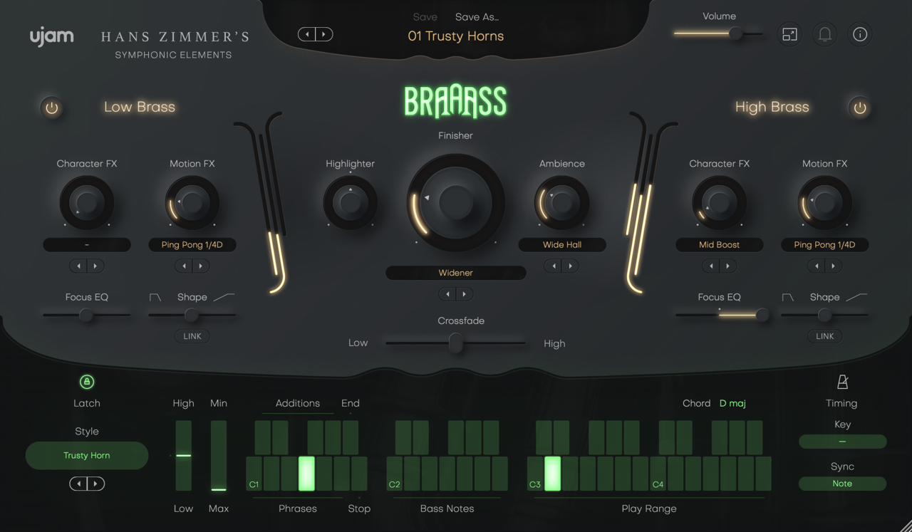Symphonic Elements BRAAASS는 한스 짐머의 전설적인 브라스 녹음을 프레이즈 기반의 악기로 새롭게 선보입니다. 프렌치 호른, 트럼펫, 트롬본 등 세계적 수준의 연주를 담아낸 BRAAASS는 오케스트라 브라스의 힘과 장엄함을 직관적인 악기로 구현합니다. 영화 음악부터 강렬한 힙합 비트, 실험적인 테크노까지—BRAAASS는 복잡함 없이 수백만 달러의 사운드를 제공합니다.