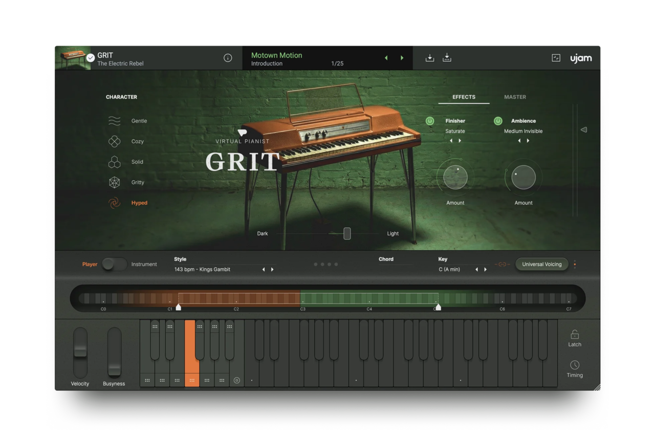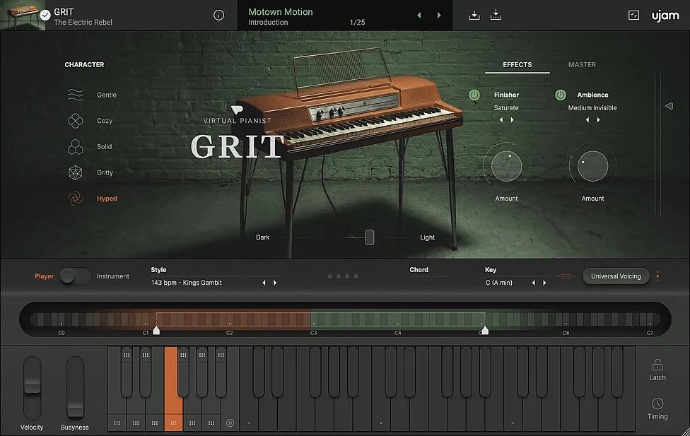 Virtual Pianist GRIT는 1950년대의 희귀한 커스텀 Wurlitzer electric piano에서만 느낄 수 있는 거친 bite와 상징적인 bark를 그대로 담아냅니다.