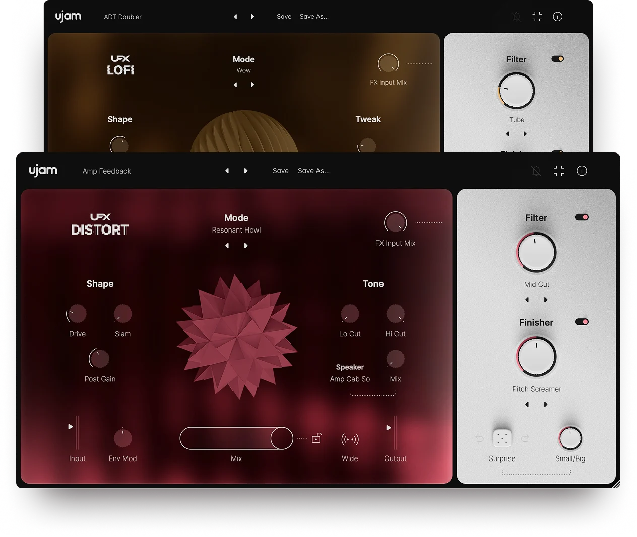 새롭게 설계된 두 가지 UFX 플러그인 LOFI와 DISTORT는 사운드 디자인의 수준을 한 단계 끌어올립니다. 각각 20개의 독립적인 알고리즘을 통해 섬세한 bitcrush, tape, vinyl 질감부터 벽을 무너뜨릴 듯한 강렬한 distortion까지 폭넓은 변주가 가능합니다.